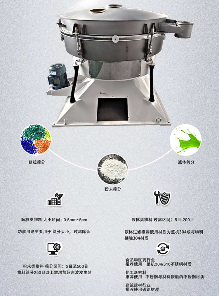 304不銹鋼材質(zhì),篩機外形光潔美觀,無毛刺,是為了滿足大產(chǎn)量、高精度的篩分要求而特殊設(shè)計的一種多用途新型篩分機械設(shè)備,其充分模擬了人工篩分的原理,篩分精度可達到95%以上,處理量是普通篩機的3-5倍,篩網(wǎng)使用壽命也是常規(guī)篩分設(shè)備的5-10倍,適用于精細和超精細粉末與微粒物料的篩分,特別適合難處理、高產(chǎn)量的篩分工藝。